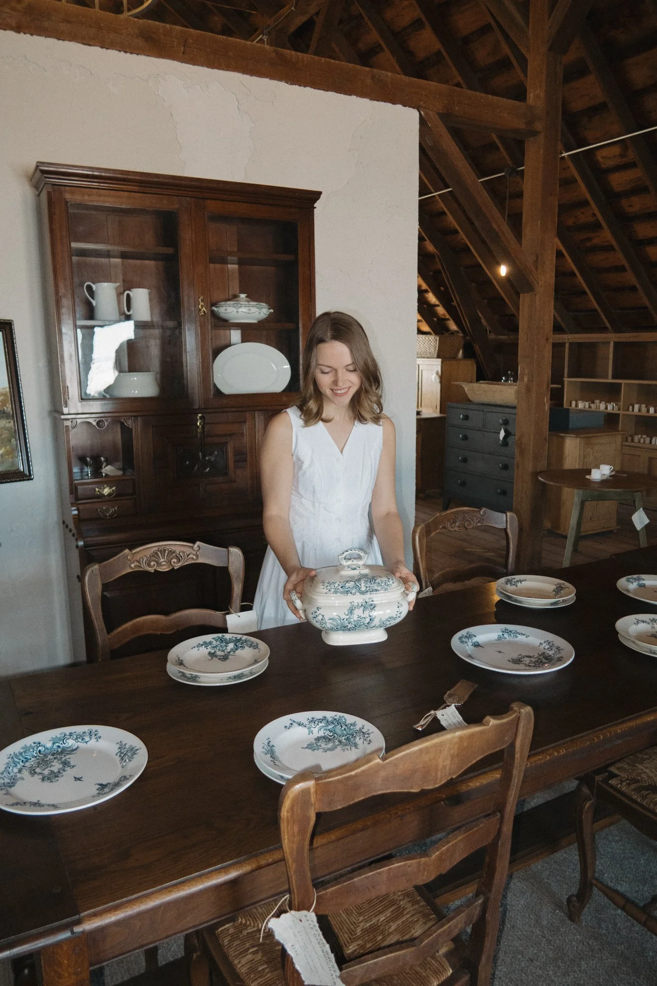 Thoughtfully styled vignettes throughout the barn